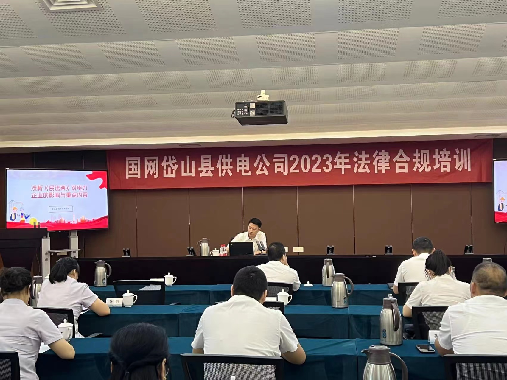 2023年7月18日,我所郑挺律师应顾问单位国网浙江省电力有限公司岱山县供电公司的邀请,为该公司开展了法律合规培训授课,并以《浅析<民法典>对电力企业的影响与重点内容》作为主题进行授课分享。